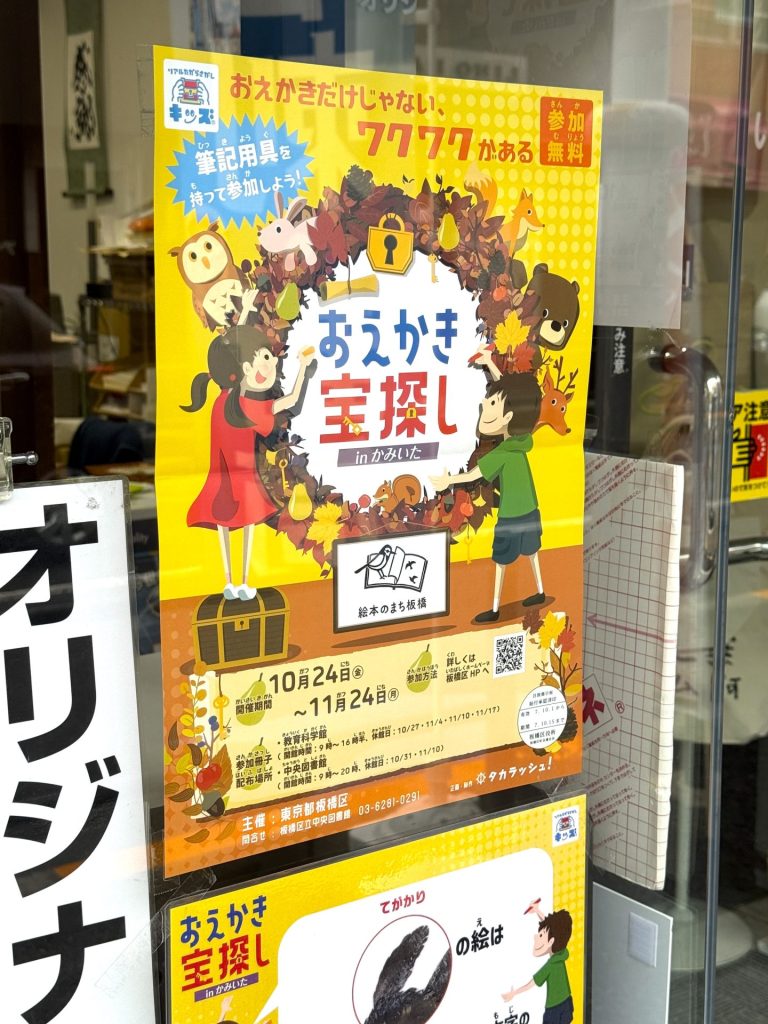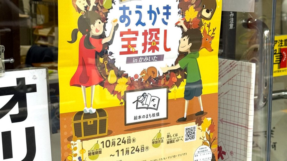 上板橋駅を中心とした地域で、絵本に登場するキャラクター(人物・動物など)のイラストを探し、お絵かきをしながら謎を解く宝探しイベントを開催中!
